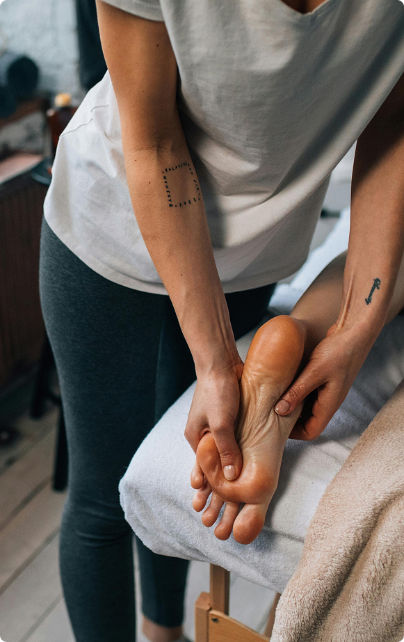 Reflexology uses gentle, targeted pressure on the feet, hands, and ears to promote relaxation, reduce stress, and support the body’s natural balance. Treatments are provided by Gina, a Registered Massage Therapist (RMT), with insurance receipts available for reimbursement